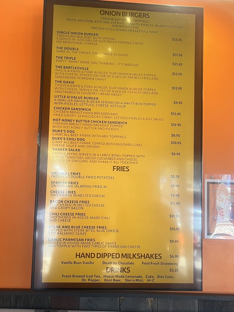Welcome to Dukes Old Fashioned Onion Burgers, a haven for burger aficionados nestled in La Mesa, CA. Here, you’ll find an array of mouth-watering onion burgers that pack a flavorful punch. Each burger, from the classic Single Onion Burger to the indulgent Triple Onion Burger, boasts generous toppings and a juicy patty, all prepared to delight your taste buds.